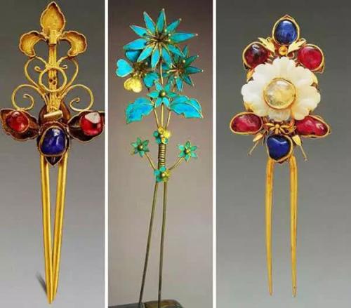 A little jewelry fun fact of the day: The traditional hairpin (zān (簪), jī (笄)) saw the light of fashion during the latter dynasty. As its primary purpose was to firmly fix hair and (official) hat together, the zān could be used to refer to the social identity. For women at court, there was also the chāi (钗), one hairpin formed of two separate fragments.